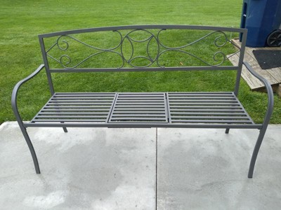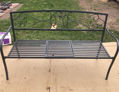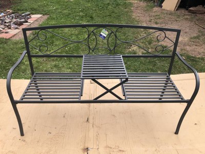 [This review was collected as part of a promotion.] Cute alpine metal garden bench with retractable table....I was gifted this free sample for testing purposes and I like it. Came with a few rusted spots but so little I can repaint. (No biggie) came with damaged threads but we managed to screw a few bolts to keep it strong!! This ain't no complaint because I totally like the after look in my front deck. Other than that is an iron frame material. Black finish features uv protection and is a weather protection bench. After build its sturdy strong to hold 2 to 3 people , you might just want to to add seat cushions or so but other than that it's a keeper .... it Adds elegant seating to your home's outdoor area with the Alpine Corporation Metal Garden Bench with Retractable Table. This garden bench with its retractable table provides a timeless design for a stylish addition to your garden or patio. The built-in retractable center table can be folded up or down for versatile seating options. With a classic design, this decorative yard seating provides a charming outdoor space for you to entertain family and friends. This bench is constructed from durable, weather-resistant metal for long-lasting use. This timeless vintage-style bench comes measures 59 in. L x 21 in. W x 34 in. H for use in almost any outdoor space a