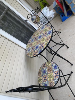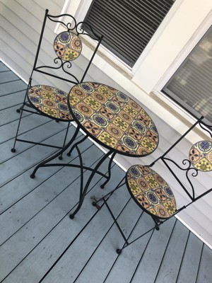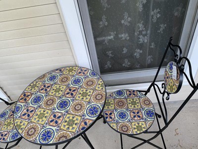 [This review was collected as part of a promotion.] This Mediterranean Tile Design Set is so beautiful. It is very heavy and sturdy. It fits perfect on my front porch. The tile design is so beautiful and I love the colors. It’s perfect for the summer weather. Now I can sit on my porch and enjoy the weather.