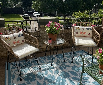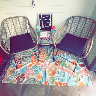Love this nuetral Rattan Bistro set. Fits perfectly in smaller spaces & looks amazing. Pretty comfortable & sturdy. Was easy to assemble. Gives such inviting summer vibes, great to sit in while enjoying morning coffee.