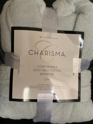 S/M Luxe Zero Twist Bath Robe White - Charisma: Cotton Terry, Machine Washable, Long Sleeve, V Neck, Front Tie Closure