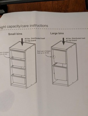 removed 1 star because the edges of the press board are not covered well, you can see the wood under the white and also not great instruction on the bins that fits this. Otherwise it's perfect for my toddler/baby room. Using it next to the diaper changing table and put an organizer on top for diapers. Will put extra wipes in the top bin and let my kids put toys in the other bins. When I bought it there was no direction as to which bins fit in it. I bought the small, medium, and large just in case. the instructions inside the pack clarify it fits 4xsmall bins or 2x large bins. the medium "fits" but the slot spacing doesn't work so there is a big gap if you use medium unless you drill new holes for custom slot location. I ended up using 2 small on top and 1 large on bottom. I wish the bins came in colors, I could only find white or black.
