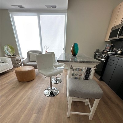 I wanted 2 stools for my small island in my tiny space and these are perfect! They are very easy to assemble. I think it took me 10 minutes each. I love that they swivel and have adjustable height. I have back pain from a bike accident and love that I can move one over to my tall counter when I'm doing meal prepping and cooking. Now remember that these look good but up close you will see that they are not high end quality and might not take a beating for a family with young children. They are fine for my needs and a great inexpensive and attractive solution for staging a home for sale. You can buy this with confidence unless you are looking to furnish a million plus property.