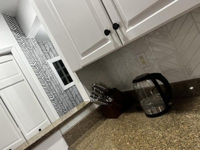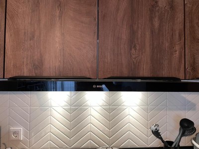 Tiles look really nice and real, I am very happy with them. I went with one of the option your team recommended and it really fits perfectly. It elevated my kitchen space completely. After 2 days I can confirm that cleaning is very easy. Looking forward to see how they will age with time. However, I have to give only 4 stars, cause exact overlaying of this large format files was not very easy. We spend a lots of time for each tile, two persons, infrared and manual leveling tools., etc...As a technical person, my lines have to be straight. And still at the end, it was just not possible to make everything perfect. Up close you can see some uneven spots and you can see it is glued, which was kind of small disappointment. It was very hard to identify the overlay line and not go over the line or "under" the line. I think maybe overlaying lines needs to be more visible, as a guidance for overlaying, (for example light transparent yellow or something). Also, the upper overlaying line could be thinner, maybe that way it will be less visible after. Specially with chevron, you can clearly see upper overlaying tiles. The side lines are really invisible (if you make it right;-)), that is beautiful. All in all I am very satisfied with choice and purchase. For next time however, due to difficulty of overlaying, I would choose one of the smaller formats. Although, this design is really nice- sooo....maybe you can make the same design in smaller format?!:-)
