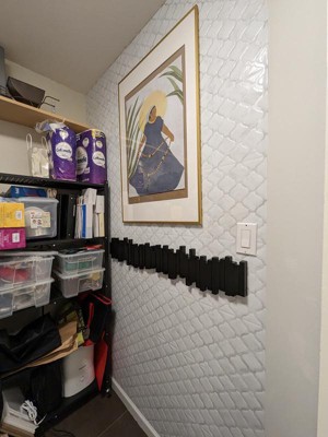 Updated an uneven / damaged wall surface with 24 of these tiles, and it looks a lot better. I do wish there was a discount for more tiles (I only got two per package and it got quite pricey...), but am still happy. With all the cuts, I managed to finish this project in 3 hours, by myself. Attaching the before/after for reference :)