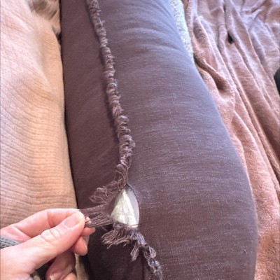 This pillow was the perfect touch to my new bedding. It added a bit of texture to the bamboo duvet cover. This item is soft to the touch but holds its shape well.