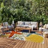 We have a very large area of patio space with conversation sections, dining areas, grilling sections and just open space. We selected this carpet because it is non slip, vibrant, fun and we are divers. It totally completes our conversation area.