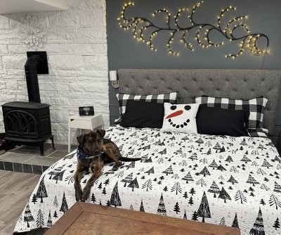 The Northern Star Reversible Quilt Set by Levtex Home is inspired by a contemporary christmas landscape. Offered in shades of black and white, this design will immediately transform your bedroom. Made with the softest lightweight brushed microfiber, this reversible quilt features a decorative christmas tree design, reversing to a chic buffalo plaid in black and white on the other. The Quilt Set is machine washable and includes the quilt and standard pillow shams. Bring the holidays home!