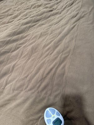Serta Queen Fleece to Shearling Electric Heated Bed Blanket Tan: 5-Year Warranty, Machine Washable, Cozy