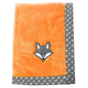 - Bacati - Playful Fox Orange Grey Embroidered Blanket
