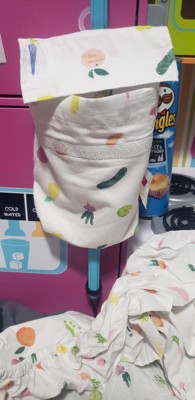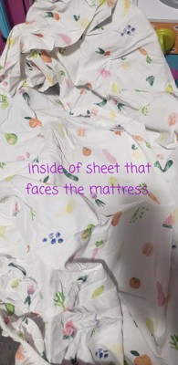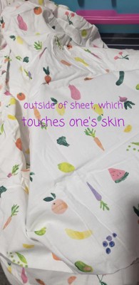 This might be the cutest crib sheet ever! Fruits and vegetables! My little one was so excited to see familiar foods on her sheet! The colors are bright and pretty! This sheet fits snuggly, and is super soft. Definitely recommend. There is simply no reason to purchase crib sheets anywhere besides Target. They have the best quality, and most beautiful designs.