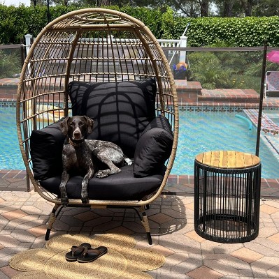 Best Choice Products Wicker Egg Chair Oversized Indoor Outdoor Patio Lounger w/ Steel Frame - Navy