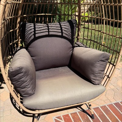 I love this chair! I fell in love with the design when I first saw it as a patio in store display 7 years ago! So, what do I like? It’s like a cave! For me! I fits me and probably another but that’s debatable because I don’t know if I can share space well. ;p the love the medium color gray I got, but I wish the inside frame was gray too. It’s huge! When I got the box I was skeptical about how can this cave fit in the box! Of course, once I opened the box I knew it was another Lego-like project. I love putting stuff together. The pieces were labeled and the directions clear-ish but I would have liked the directions to be more detailed. I used my own tools since these are not my first furniture to put together. I would recommend two more additional tools to this set. I gotta say it would be easier with 2 people putting this together but with me alone and the weight and shape of it, it took me 2 hours to put together, not 30 minutes. I did have to do some rescrewing some than once because of the aesthetics and the wrap material that makes it wicker-ish and can be chipped off by a washer placement. I’m 5 feet 4 inches at 111 lbs so it’s a great size for me. It’s my reading nook with all the cushions and comfort of someone who wants to feel like they’re in a protective barrier. In the photos I showed how tall the chair was to my height. It would be comfortable to nap in. It also fits my hubby comfortably and he’s almost 6 foot tall. I like that it’s sturdy and sits fixed on a stand versus other models I’ve compared to. What I would also like is for the cushions to not move when I adjust myself in the chair and for the bottom cushion to be thicker. I did add my own cup holder because it’s a great chair to sit and read and drink coffee or tea in. It’s an indoor chair for me in my garden corner. Happy nooking!