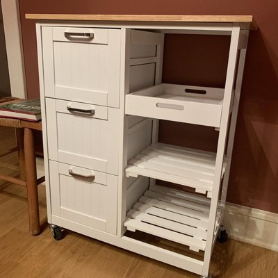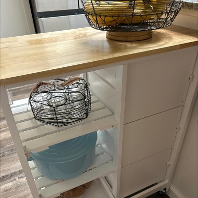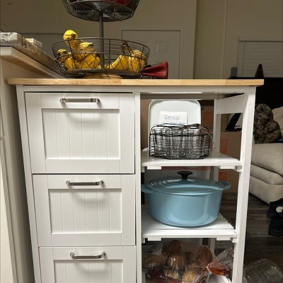 Costway Rolling Kitchen Island Utility Cart with 3 Storage Drawers & Open Shelves White
