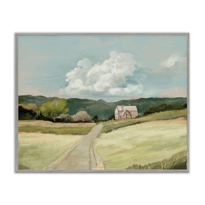 Stupell Industries Farmside Landscape White Barn Green Meadow Framed Giclee Art, Gray, 20" x 16"