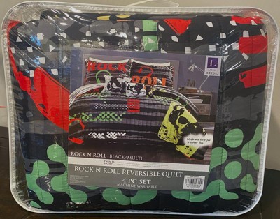 [This review was collected as part of a promotion.] The ROCK N ROLL-QT-BLACK/MULTI-5PC-F/Q is perfect in our son's room. It makes his room feel so much more fun. He tells us he feels like he is on a road trip everytime he climbs into bed. The comforter is very soft and warm for him as well. He just can't wait to go-to bed every nite now. Definitely a great bedding set! I definitely recommend this to others.