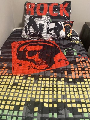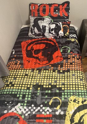 4pc Twin XL Rock N Roll Kids' Quilt Set Black - Lush Décor: Music Pattern, Microfiber, Machine Washable, Breathable Material