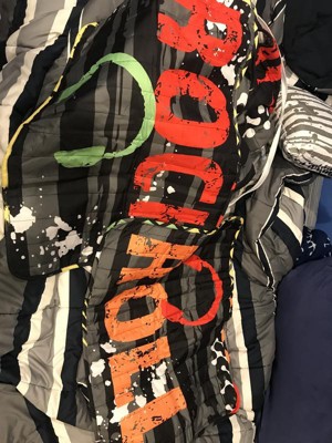 [This review was collected as part of a promotion.] This comforter set is really nice! The rock and roll design is cute, the colors are vibrant, and my son loves it. I even like the pattern on the underside of the blanket. The throw pillows are a great addition as well and pull it together nicely. The comforter is thin and lightweight, but warm. I was actually surprised by how soft the blanket and pillow case are. It just feels kind of plush. My son gets really hot when he sleeps, so this comforter is absolutely perfect for him. This is just a really nicely made and good looking comforter set.