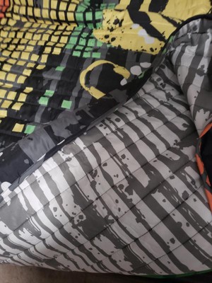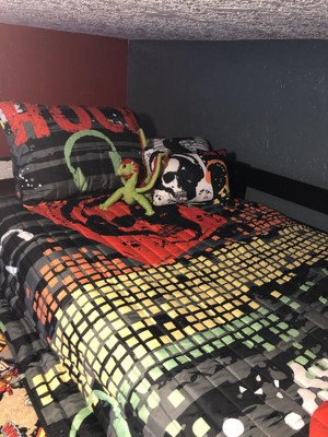[This review was collected as part of a promotion.] So my 10 year old is moving away from the comic book scene and into the video game scene. When I got this bedspread for him he was in AWE! "The skulls are sooooooo cool mom!" "I have headphones for my video games JUST LIKE THOSE ONES!!" "When can I put it on my bed?" Needless to say he is a fan. I like that it is so large. My kid has a loft bed and the Twin XL made it very easy to put on the bed.