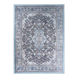 Modern Geometric Floral Medallion Indoor Area Rug or Runner, 5'x7'6", Azure - Blue Nile Mills