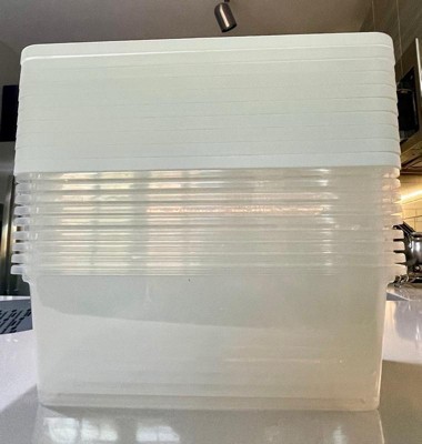 [This review was collected as part of a promotion.] As a teacher I need storage and organization. There is always something that needs a home. These containers are great! The lid goes on securely. They fit stacked in our cupboard.