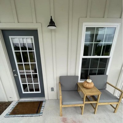 Made of premium acacia wood, this set is sturdy and sturdy. Comes with thick seat and back cushions, our loveseat will provide the ultimate comfort to you. Even better, with smooth zipper, the cushion covers are removable and washable. In addition, the coffee table can be used separately or assembled on loveseat to meet your different needs. With modern and simple design, this furniture set will be an great addition to your balcony, backyard, poolside, etc.