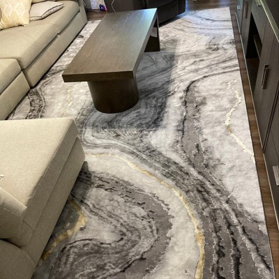 Really good quality! Love the color!! The gold isn’t tooooo gold but more of a shimmer white adds a nice touch to the dark parts of the rug.