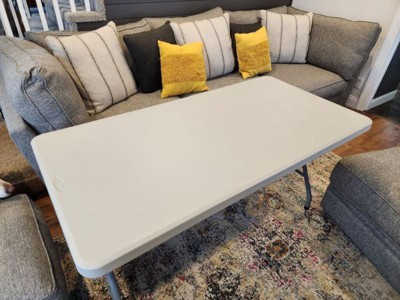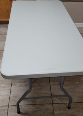 Had to get a 5’ table to fit the space. It was my fault that I didn’t check and see if the table folds. It doesn’t. I’ll make do. However, the plastic pieces that hold the legs in place arrived broken and that is NOT on me.