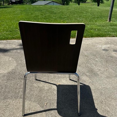 [This review was collected as part of a promotion.] The Alexis chair has a sleek, modern design and sturdy feel. Being stackable makes them so easy to store and bring back out when I’m ready to use them for events, dinners, or any other gathering where I might need some extra seating. The gorgeous dark wood look is elegant and gives an elevated feel to the piece.