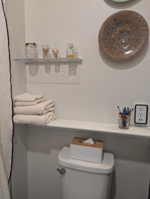 Easy to attach the bracket to the wall - love the tiny level it came with. But, the shelf will not stay on the bracket - I’ve hung drywall, I’ve tiled, I’ve done all sorts of projects and I CANNOT get this thing to work. So now I have 26 small nail holes in my wall and a shelf that I can’t seem to get to stay put. Super disappointing for the price.