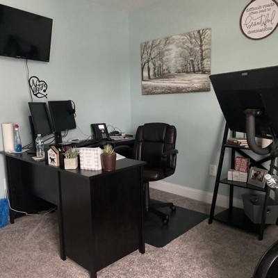 Finally have plenty of room for all my office stuff. I like the antique finish, the L shape, its sturdiness, and the single file (as soon as we get it squared away). The downside was that it probably took at least 10 hours to assemble (mislabeled parts, instructions a bit sketchy at times. Don't know whether your engineers go over these instructions periodically for clarity but it might be a good idea). That said, all holes were drilled exactly correctly. The instruction book was thick and quite detailed. Granted, husband is not a carpenter or DIY guy, but really? Would have been 5 stars had assembly not been so painful.