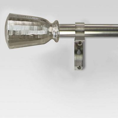 Style the look of your window decor with this Chiseled Cone Curtain Rod from Threshold™. This curtain rod is designed with chiseled cone-shaped finials on either end to provide a visually balanced and decorative look. Made from tarnish-resistant metal, it can hold either light, medium or heavyweight curtains. The adjustable length accommodates a range of window widths, while the matching mounting hardware allows for quick and easy installation.