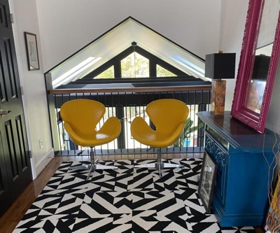 Chairs are comfy, color is just as pictured and assembly was simple and easy. Perfect to brighten up the nook on our staircase landing. The vinyl upholstery feels nice and is not super shiny - just right.
