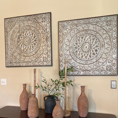 - •Wall decor carries an tarnish silver metal with textural surface and highlights of bronze