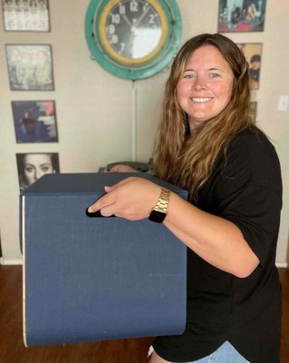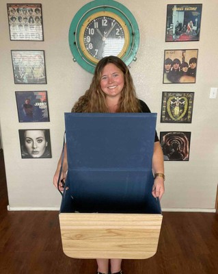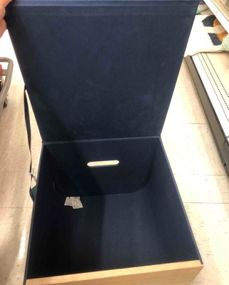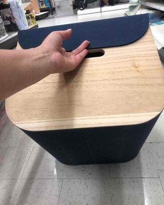 This ample storage bin is just perfect. The navy with the natural wood is gorgeous and the lid makes it even better. I'm buying more of them.