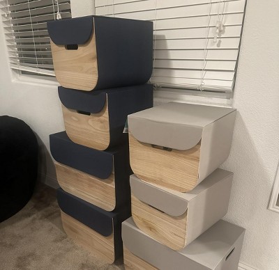 I was given an incentive for an honest review of this product and to be honest I might actually be in love. I love how late this boxes and I love the handles that make it easy to carry things in it. I like how the design of it is very minimalistic. I love how easy it is for it to open shirt almost like a magnetic open InShot. And I love the color. It does fit just about an any room and it does seem stackable. I received an incentive to write this review.