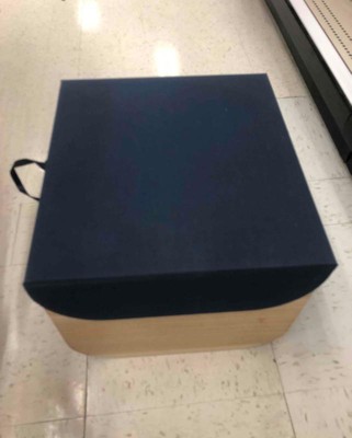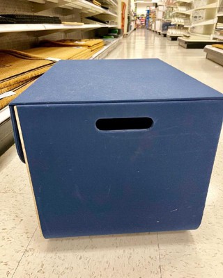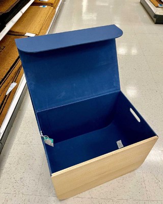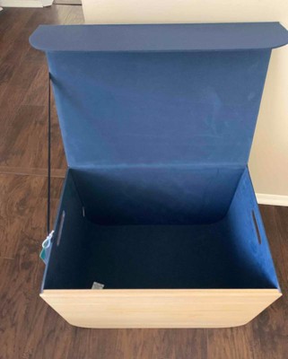 Large Natural Wood Rectangular Kids' Storage with Lid Navy - Pillowfort™: Basket with Cut-Out Handles