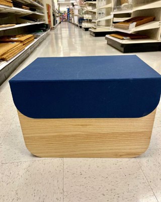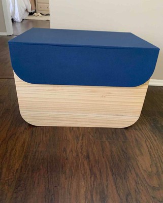 Large Wood Storage Box with Attached Navy Lid