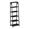 Decorate your living room, bathroom, bedroom, or office while adding functional storage with this Five-Tier Ladder Bookshelf by Hasting Home. Ideal for displaying books, showcasing knickknacks, or highlighting family photos, this ladder shelf boasts a stylish design that pairs well with classic and contemporary furnishings and a black finish that meshes with most interior design palettes. Count on the descending angled build for a space-saving footprint in rooms both big and small, and depend on the straight back to keep these standing shelves stable and steady when placed against walls.