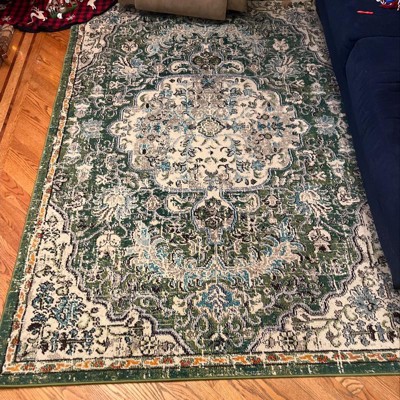 Gorgeous colors, perfect pile thickness, after a day or so laid completely flat, brightens room and the mixture of rich, warm color and classic pattern top it all off. Great value!