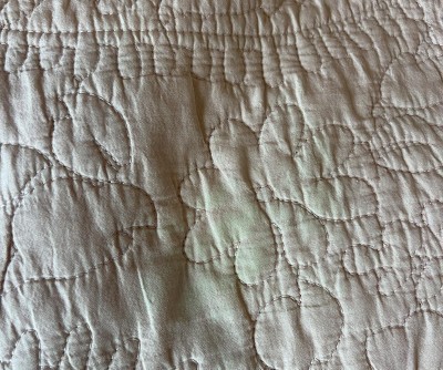 This review is for the blush color only. I love the look of the quilt. I love the feel of the quilt. But after washing only three times using seventh generation laundry detergent, separate, per the care instructions. It has horrible discoloration all over it. The first time I washed it it was just one spot and I assumed it was something my child or I did, but it’s progressively gotten worse with each wash. Our washing machine is brand new so it’s not that either.