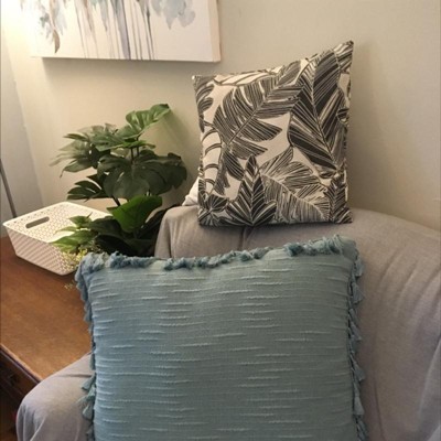 Euro Textured Slub Tassel Decorative Throw Pillow Light Teal Blue - Threshold™: Cotton Dobby, Indoor Square Accent Pillow