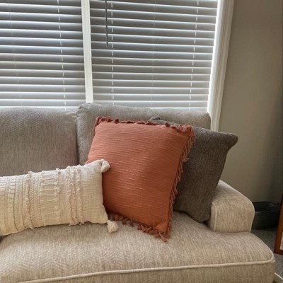 Love the large size, texture, and terracotta color. They are also super comfy on my leather sofa.
