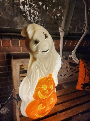 Union Products 56480 60-Watt Light Up Ghost and Pumpkin Halloween Outdoor Garden Statue Decoration Made from Blow-Molded Plastic, White/Orange - 1 of 4