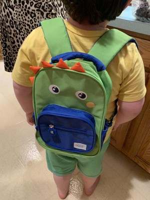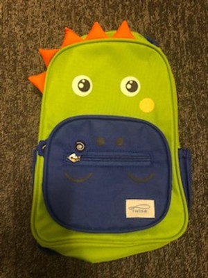 This is the perfect size backpack for a toddler/preschooler. It can easily fit a change of clothes, diaper, snack and a little toy. The front pouch can hold ID and smaller items like a pair of socks or gloves. I personally think the dinosaurs design is so cute and easy to spot.