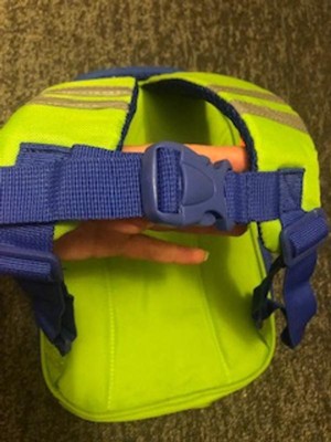 My 3 year old son loves wearing this back pack. He finds the dinasour so cute and it fits everything he needs including a waterbottle, toys and snacks. The straps in the front keep the bag from sliding off his shoulders and make it so easy for him to carry it long distances easily. The colors are so bright and the design is very fun. This is the perfect size for kids who need to carry smaller items to the playground or preschool.