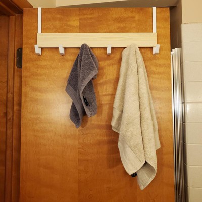 Large Over the Door Hook with Wood 6 Hooks Matte White - Brightroom™: Steel Door Hanger Rack, No Assembly Required