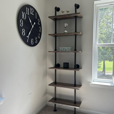 Costway 6-Shelf Rustic Pipe Shelving Unit, Vintage Industrial Pipe Wall Shelf Brown