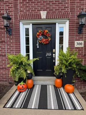 [This review was collected as part of a promotion.] Bought this rug for my front stoop. It is a nice texture to withstand the rain and sun and the snow that’s about to fly! The bold black is very rich and the white is a bright white contrast. This is exactly what I was hoping would arrive. The price is spot on too!