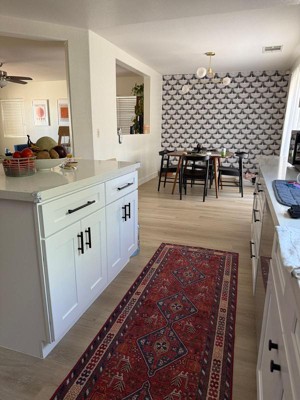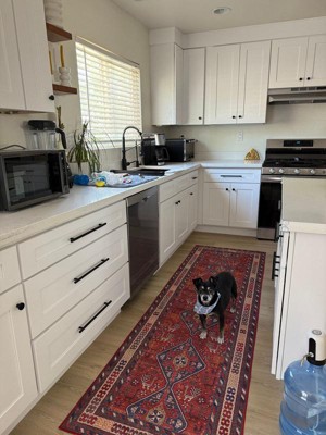 [This review was collected as part of a promotion.] Love this runner in my kitchen under the sink area catching water drips and food droppings. What the dog misses, the rug catches. Love the color and design. Love the size. Especially love that it’s washable. I am enjoying my new rug. Makes my kitchen pop!
