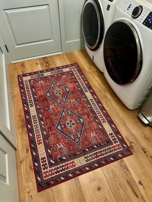 • Stain-Resistant Material: Our machine washable rugs are crafted from synthetic materials that are stain-resistant, lightweight, and easy to clean. The stain-resistant properties ensure that the rug maintains its vibrant colors and patterns, even after enduring the demands of everyday use. If your rug is located in an area that receives direct sunlight, regularly rotate your rug to maintain its appearance.